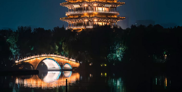夜幕下的大明湖被灯光点缀着,带着一丝朦胧之感,历来被视为一种良辰美景。明月高照的晚上,在视野开阔的大明湖畔赏月,有一种说不出的宁静与安逸。