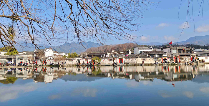 南湖位于宏村南首,湖面倒影浮光,水天一色,远峰近宅,跌落湖中,动静相宜,更显明丽。