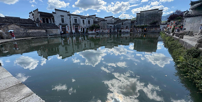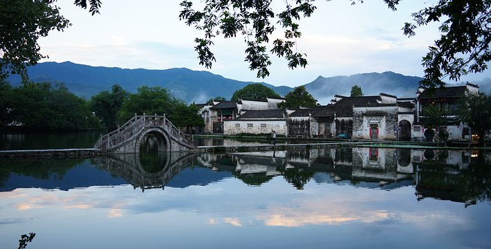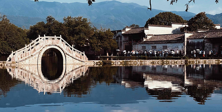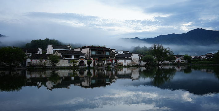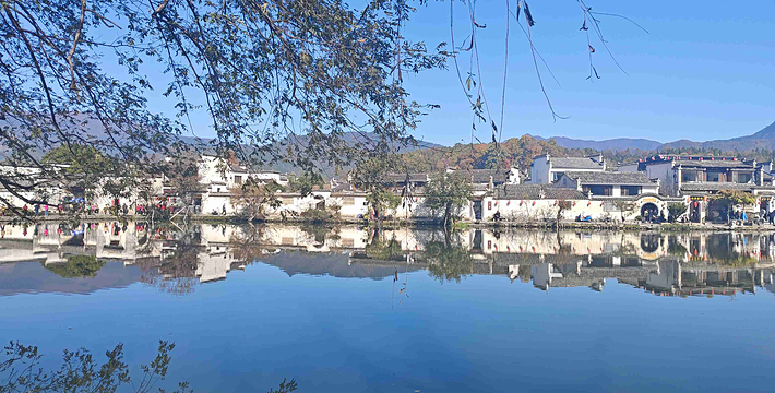 南湖位于宏村南首,湖面倒影浮光,水天一色,远峰近宅,跌落湖中,动静相宜,更显明丽。