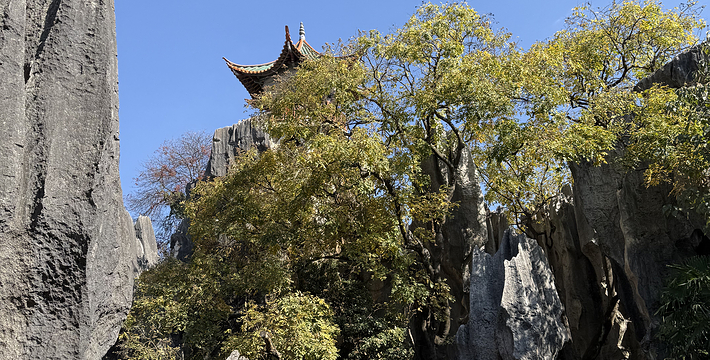 这座形似阿诗玛的石林含情脉脉,似在翘首急盼阿黑哥的到来,是石林风景区著名的景点,也是人们怀念阿诗玛、重温那个美丽传说的好地方。