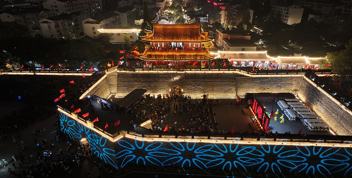 荆州古城历史文化旅游区为国家4A级景区、全国重点文物保护单位。位于湖北省荆州市荆州城。长江航线、宜黄高速、荆襄高速可达。距武汉市200公里、宜昌市90公里。旅游区主体为完整的古城墙。现存的城墙为清朝顺治三年(公元1646年)依明代旧基重建,采用糯米石灰浆灌缝、砖城墙和土城墙互相依托而成。荆州古城东西长3.75公里,南北宽1.2公里,周长11.28公里,城墙高8.83米,城垛4567个,炮台26座,藏兵洞4座,有城门和城楼6座。城池依地势而起伏,顺湖池而迂回,蜿蜒状若游龙,飞舞于湖光水色之上,绚丽壮观,现已成为国内外游客热切向往,感受历史的旅游胜景。禹定九州,始有荆州。荆州古城墙在时间上跨越数千年,其沧桑岁月背后隐显的文化、艺术、建筑、历史、军事、民风等内容包罗万象,异彩纷呈,是历史的巨大遗赠。古城保存完好,是我国首批公布的二十四座历史文化名城之一,是楚文化的发祥地。荆州古城墙现已成为外环跑马,内环通车,城墙上行人的环城风景区,是感受三国文化、楚文化不可替代的人文景观。游览项目有“荆州古城墙徒步健身环城游”、“荆州古城墙考古游”、“三国遗迹游”、“荆州古城墙民俗游”、“历史文化节庆游”等。主要景观有宾阳楼、藏兵洞、炮台、文字砖、朝宗楼、城墙博物馆、公安门(水门)、仲宣楼遗址、曲城、南纪门、远安门、安澜门等。
