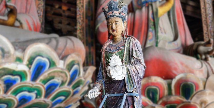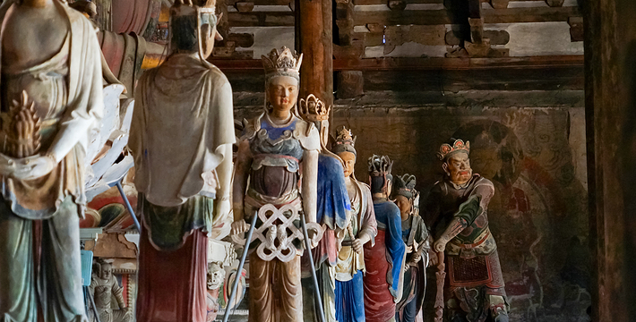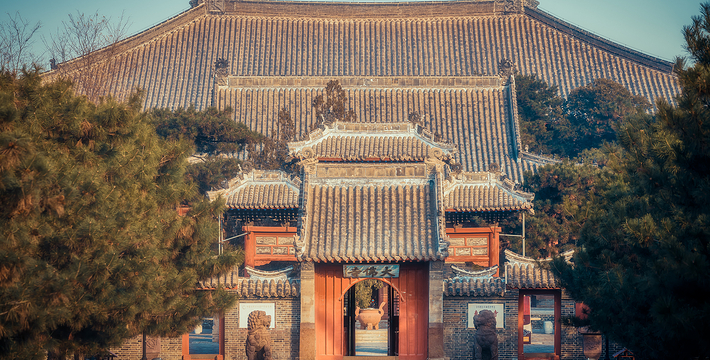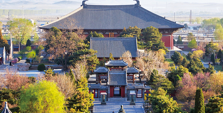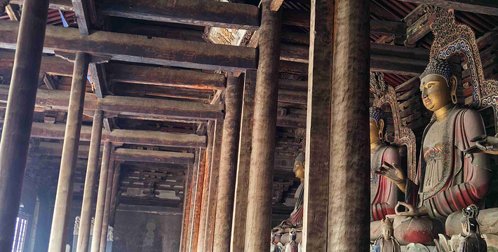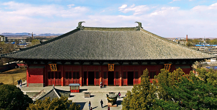 奉国寺座落在辽宁省义县城内,始建于辽开泰九年(公元一零二零年)因殿内塑有七尊大佛,又俗称大佛寺。奉国寺由山门、牌坊、无量殿、钟亭、碑亭、大雄殿、西宫禅院等古建筑构成,占地3万平方米,是一座宏伟壮观,保存较为完整的古代寺院。大雄殿位于中轴线的北端,面宽9间,通长55米,进深5间,通宽33米,总高度24米,建筑面积1800多平方米,奉国寺因大雄殿佛坛上塑有一组彩色群像,“过去七佛’,并列一堂,佛教界独一无二。佛像高大、庄严、俊秀,一千年以来,仍然保存完好,在国内外佛教界具有特殊的影响力和知名度。殿堂内天王威武雄壮;14尊胁侍菩萨栩栩如生;梁架上的辽代彩绘、飞天;山墙上的壁画;佛坛前的石雕供器也和佛像一样,均属古代艺术珍品。考古专家,无不令人叹为观止。由于大雄殿的建筑和殿内遗存都具有极其珍贵的历史、科学、艺术价值。经过一九八四年开始的五年修缮和扩建,奉国寺现已成为环境优美、旅游服务项目齐全,闻名中外的佛教旅游胜地。先后被评为“全国著名景区三百家”,“辽宁省五十佳景”、“锦州十佳景”。