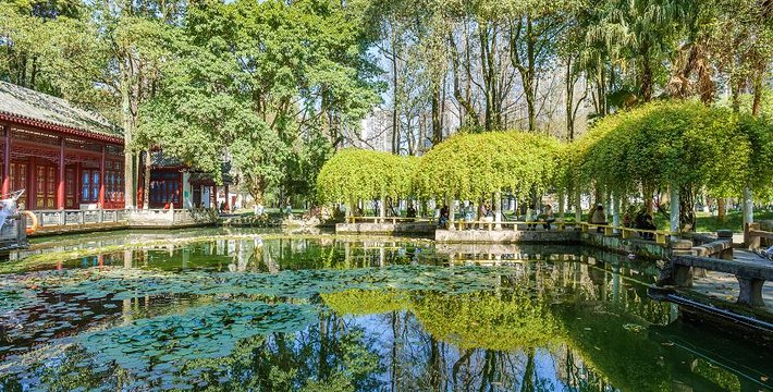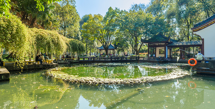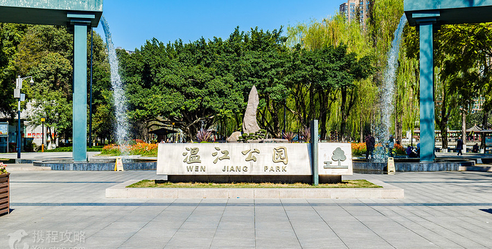 温江公园位于温江柳城东南隅江安河畔。2001年改建后面积扩至300余亩,水陆各半,共有亭、台、楼、阁等34处景点。园内道路面积近41000平方米;花岗石、青石铺装面积约30000平方米;草坪、绿化面积140000平方米;停车扬面积700平方米;新建河堤及栏杆3500米;安装20多个品种的灯饰2000余盏。