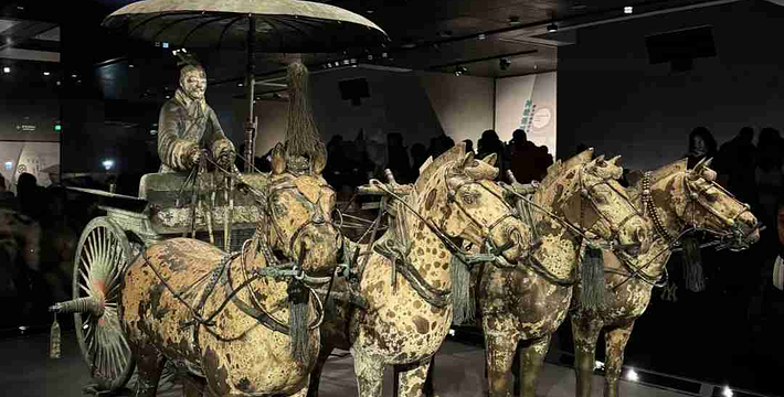 彩绘铜车制作工艺精细,造型逼真。