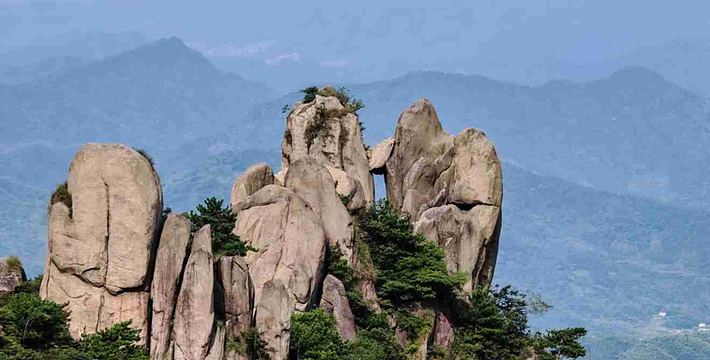 花台峰高独秀,山花繁盛,嘉木葱茏,灵石乖巧,像人拟物,惟妙惟肖。