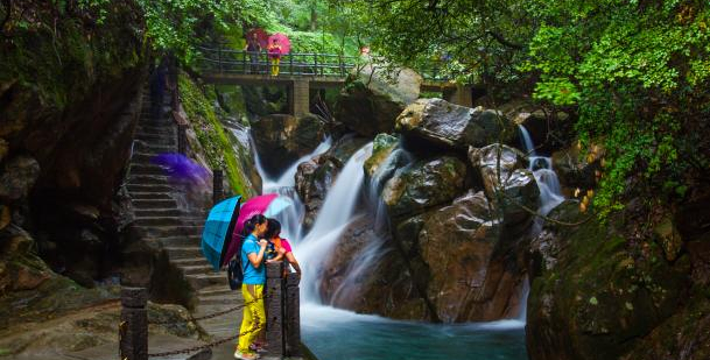 九华山间,遍布深沟峡谷,垂涧渊潭,流泉飞瀑,气象万千,宛如一幅清新自然的山水画卷。它处处有景,人移景换。