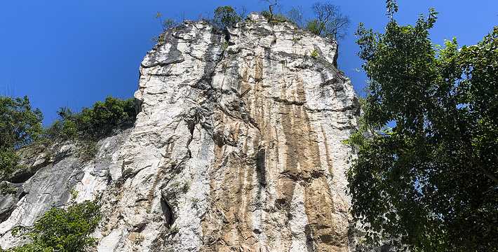 黄龙瀑呈扇形展开,倾泻而下,一路高歌猛进,坠入崖下的深潭,声如洪雷,响彻山谷,恰似一名奔放豪迈的峡江汉子。