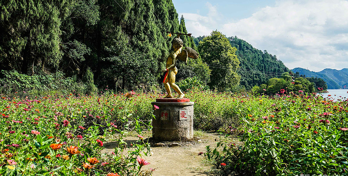 新安江铜官峡(情人谷)--建德市新安江镇内,融碧湖岛屿、亚热带雨林、岩溶溪谷、秦铜文化、爱情文化"五绝"于一体,是新安江森林公园的主体。情人谷以一条山高谷深、蜿蜒曲折、陡峭险峻的峡谷为主,具有原始、粗犷、野趣的特色。30多米高的珍珠瀑,岩壁上缀满厚厚的青苔,绿意盎然”;长达2000多米的岩溶溪流,跌宕起伏,或跌落成瀑,或舒缓成泉,或聚集成潭,曲曲折折。情人谷在秦代是铜矿的集中分布区,2000多年前,秦始皇统一中国后,在此设了专门掌管采铜铸钱的“铜官”,故此地也被称为铜官峡。在景区的双马峰之间有一座气势宏伟的铜神殿,就是为了供奉铜神、纪念铜官、祈求财运而建的。情人谷浓缩爱的精华,饱含爱的意蕴,洋溢爱的气息。情人岛、爱情广场、历代爱情诗廊、鸳鸯瀑、鸳鸯树以及心心相印潭等景观,处处关情,是有情人抒发真情、海誓山盟的载体。人们还可以在谷内“植喜树、挂情锁”,天地为证,日月可鉴,真情永驻。2002年7月27日,景区首推仪式上,100对与新安江电站同龄的恩爱夫妻参与了种植“情人林”、共锁“情人锁”、同浴“爱情河”活动。