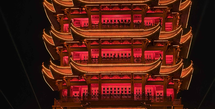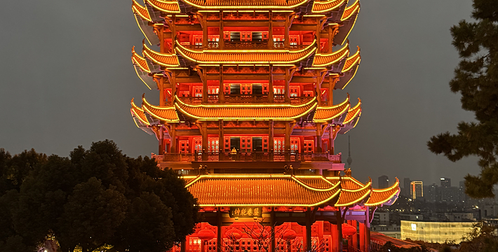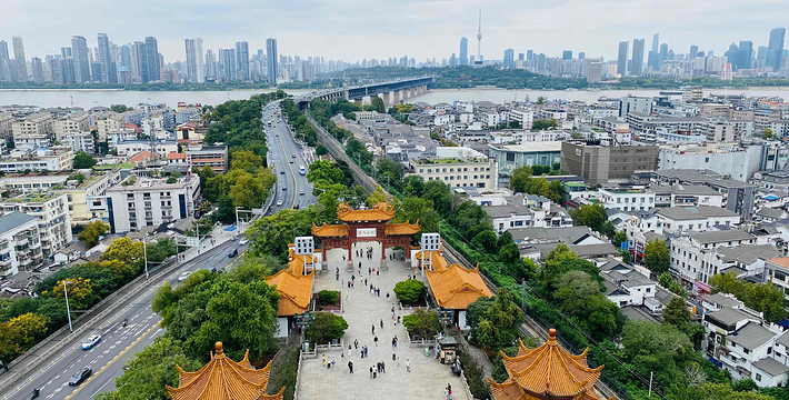 巍峨耸立于武昌蛇山的黄鹤楼,享有“天下绝景”的盛誉,与湖南岳阳楼,江西滕王阁并称为“江南三大名楼”。黄鹤楼始建于三国时期吴黄武二年(公元223年),传说是为了军事目的而建,孙权为实现“以武治国而昌”(“武昌”的名称由来于此),筑城为守,建楼以嘹望。至唐朝,其军事性质逐渐演变为著名的名胜景点,历代文人墨客到此游览,留下不少脍炙人口的诗篇。唐代诗人崔颢一首“昔人已乘黄鹤去,此地空余黄鹤楼。黄鹤一去不复返,白云千载空悠悠。晴川历历汉阳树,芳草萋萋鹦鹉洲。日暮乡关何处是,烟波江上使人愁。”已成为千古绝唱,更使黄鹤楼名声大噪。