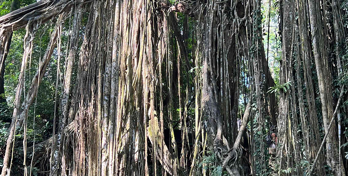 圣猴森林公园(Monkey Forest)位于巴厘岛中部、Ubud 西北方不远处,距离登巴沙大约20公里远。此处是一处占地640米高的茂盛豆荚植物的森林,园内林木葱郁茂盛。 公园外围有一间庙宇,这里居住着许多猴子,被视为圣猴。据说这些猴子原来时常搔扰民宅,当地农民不堪其扰,于是就在这里建庙吸引游客,由游客来喂食猴子。这样一来,当地居民既可以免除被猴子搔扰,又可以向游客出售喂食猴子的花生、玉米、香蕉等从中牟利,真是一举两得。 游客拜访庙宇时,猴子会向游客...