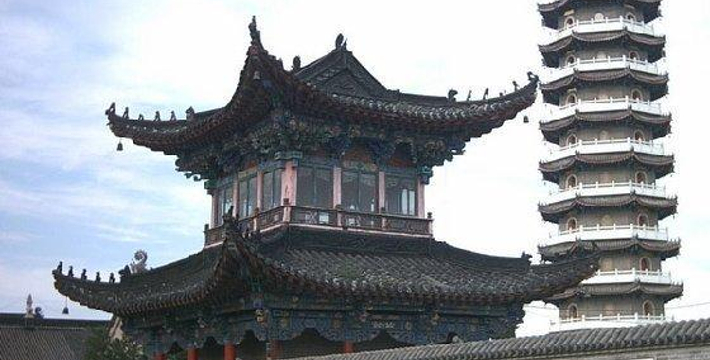 营口楞严禅寺位于营口市中心,是我省现存较为完整的民国时期的大型寺院建筑群之一。始建于1922年,于1931年竣工。寺院呈规则的长方形,南向,南北长164米,东西宽49米,占地8036平方米。楞严禅寺布局整齐,造型严谨,结构精巧,雕绘细腻。1979年被列为省级重点文物保护单位。寺院为三进院落,青砖围墙,规模宏大,气势壮观,为中国东北四大禅林之一,颇负盛名。山门、天王殿、大雄宝殿、藏经楼,南北一线排在寺院的中轴线上,两侧有钟鼓二楼和东西配殿。山门为双层重檐歇山式建筑,面阔三间,左右各有一耳门。越过山门便是一进院落,钟鼓二楼坐落于院前东、西两侧。钟、鼓楼皆为歇山双层飞檐楼阁式。钟楼正梁悬吊一兽首环铸铁大钟,重约二吨,钟上铸有“营口楞严禅寺”铭文。建在高一米余花岗岩条石台基上的天王殿,是一进院落的正殿。天王殿面阔五间,硬山式建筑,正脊为透雕四龙戏珠装饰。大殿前后有廊后,廊有一明间。殿内有韦驮站像,两侧供奉四大天王,塑像造形生动。二进院落的正殿——大雄宝殿是整个寺院的中心建筑,大殿面阔五间,硬山式建筑。正脊、两侧为游龙戏珠浮雕,正中为塔式火珠,小塔正中,明镜高悬,银光灿灿。殿内现陈列有如来佛、观世音、十八罗汉等铜铸佛像。铜铸十八罗汉是东北地区现存较完整的一组,这些佛像神态不一,栩栩如生,为大雄宝殿添姿增色。藏经楼为歇山式、大屋顶、四面回廊的楼阁。寺院内还有配殿四座立于院落两侧,布局严谨,排列有序,形成一组完整的寺院建筑群。