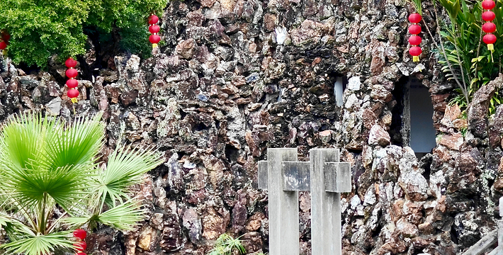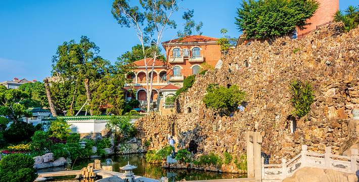 菽庄面向大海,背倚日光岩,海藏园中,傍山为洞,垒石补山,与远处山光水色互为衬托,浑为一体。