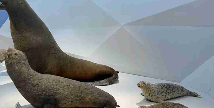 升级改造的海豹馆焕新开放,居住在这1200平米豪宅里的海豹、海狮、企鹅、海龟早已等不及迎接大家了。 海豹馆内焕然一新,一走进海豹馆,整个馆内墙体以深海蓝色为主基调,给人以静谧深邃的感觉。新海豹馆的展示和布局发生了翻天覆地的变化,参观路线进一步延伸,可谓“曲径通幽,步步惊“新”。 海豹馆内有多个圆弧型长方体的落地展窗,还有直径约2米凸出来的半圆球型视窗。而在中央展厅,上下空间纵深约7米,在圆锥体空间的底部两边有2个异形大展窗,再加上圆形落地亚克力玻璃构成的海底隧道,组成放大的、多角度的、多层次的展示模式。