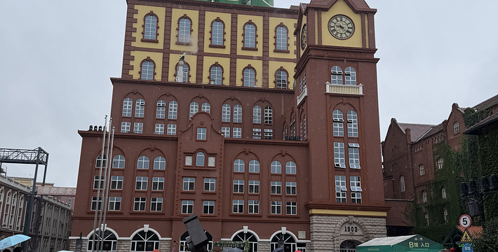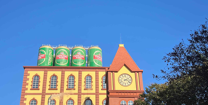 青岛啤酒博物馆设在百年前的青岛啤酒厂老厂房内,一幢幢红色的洋房很有味道,靠马路的一幢房子屋顶上,装饰着一排排超大啤酒罐,格外醒目。