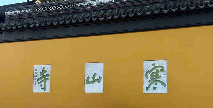 寒山寺照墙像一道屏障耸立山门之前,朝西临河而立,上置脊檐,饰有游龙,气势非凡。黄墙上嵌有三方青石,上刻“寒山寺”三字,铁划银钩,笔力雄峻。寒山寺位于苏州城西阊门外十里枫桥西南不远处。座东朝西,门对古运河,旧临官道今属江苏苏州金阊区枫桥镇。寒山寺相传始建于梁武帝天监年间(公元502—509)其经始年月不详。初名“妙利普明塔院”。(始见于《吴郡图经》、而后《吴郡志》、《姑苏志》、《百城烟水》、《苏州府志》均沿其说以迄其今。)