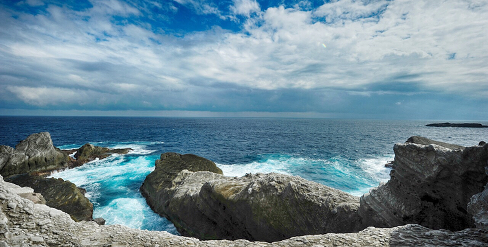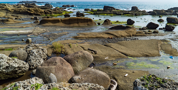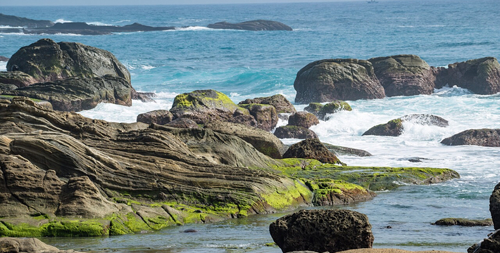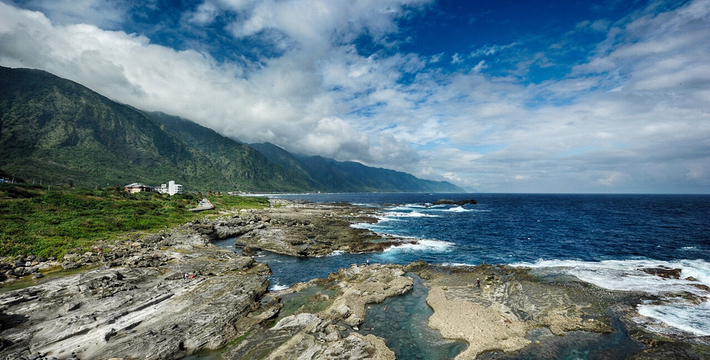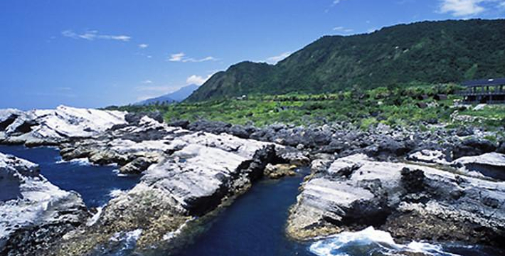 石梯坪位于花莲县丰滨乡港口村以北约2公里处,为花东海岸风景点之一。因陆地上的岩石向海伸入,形成大大小小的湾澳,其形如阶梯一般,排排长短不一,故称为“石梯坪”。隆起的珊瑚礁有些呈块状附着在岩外上,有些呈崎岖外形,独具风味。也有植物在岩台上零星分布,如林投树、仙人掌、马鞍藤等,景观丰富而有趣。石梯坪石处尽头,迤洒接连秀姑峦溪口;左侧尽头,内凹成澳,称为“石梯湾”。现已辟为渔港,湾涟漪荡漾,风光旖旎。附近鱼产颇丰,也是海钓的好地方。在石梯坪北方海滩,岸旁岩石有一海蚀巨洞,为海浪冲击岩壁而成,形如石门洞穴,为地质观察、野餐。右侧公路附近,有块“人定胜天”的石碑,因为当初开路时,海岸岩石阻隔,采用炸药爆破,牺性了许多开路人员,便于此设一石碑纪念当年开路的无名英雄。