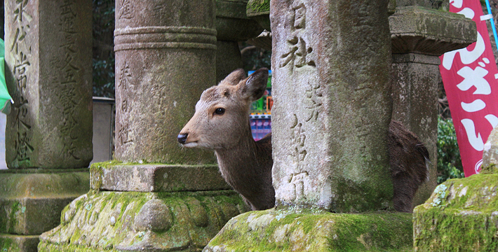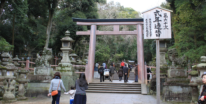 春日大社南门春日大社(かすがたいしゃ)是一座位于奈良县奈良市奈良公园内的神社。旧称春日神社。建于和铜二年(710年)。社内供奉的神明包括武瓮槌命、经津主命、天儿屋根命和比卖神。神社例祭日为3月13日(春日祭)。建设者为藤原不比等。作为古奈良的历史遗迹的一部分而被登入世界文化遗产之列。为二十二社之一。春日大社这是一处被原始森林环抱的古建筑,现已被列入世界文化遗产名录。
