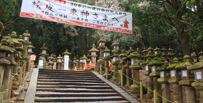 公元710年,为当时的掌权者藤原家族的守护神而建造起来的神社,神社内也因藤而出名。另外,在罗列在参道两旁的近2000盏“石灯笼”上点燃火后变成的“万灯笼”能显现出幻想般的世界。还有,在“春日大社神苑”里种植着约300个品种的植物,这些植物均在古代有名的歌集《万叶集》中有记载。