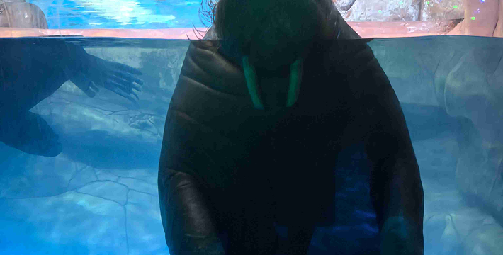 进入极地海洋动物馆的极地大厅,虽身处室内,并无局限之感,中间部分上下贯穿,视野通透,乘扶梯到达二楼,令人视觉更加开阔。在模拟的极地环境中,冰雪溶洞、爱斯基摩人雪屋等极地景象随处可见,在海兽混养池,游客们可以观赏到白鲸、海象、北极熊、海獭、海狗、企鹅等珍稀的极地动物,并参加到照相和喂食活动中去,令人充分发挥想象力,领略异域奇观。