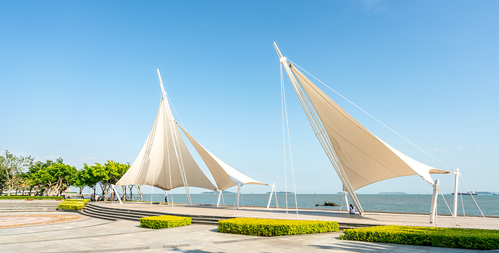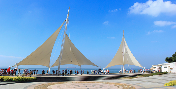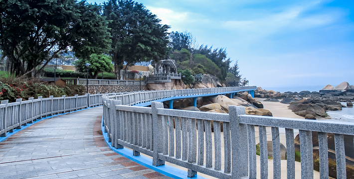 1989年建成的,长3880米,它从轮渡广场起,往左边走,经过皓月圆,大德记浴场,观海园,菽庄花园等风景点,到达海滨浴场。往前走,穿过百米山洞隧道,来到五个牌海边,即可看到上述在涨潮时因波涛撞击会发出如鼓浪声的“鼓浪石”。 再往前走,绕过庭院式的旅游度假村鼓浪别墅、华侨亚热带植物引种园、福建工艺美术学校校园,到达内厝沃,再绕过燕尾山,即可见到三丘田旅游码头和鼓浪公园,并从这里折回轮渡码头完成绕岛一周的游览。它不但自成一景,还可让游客一边领略蓝天碧海的壮美,一边浏览小岛的自然景色,而且把岛上许多景点连成一体,可登山、可下海、可观远、可近赏,顺手自然,宛若天造地设,达到借景、对景和尝景的艺术效果,给游客带来千变万化的景色和无穷的遐想。由于岛上禁止行驶机动车和自行车,旅游者得以信步漫游,浏览体现各国建筑风格的豪华建筑,美丽的山海自然景色,故人们称它为带状公园。