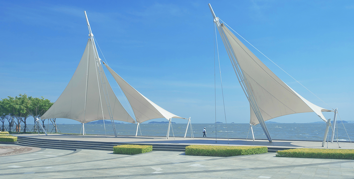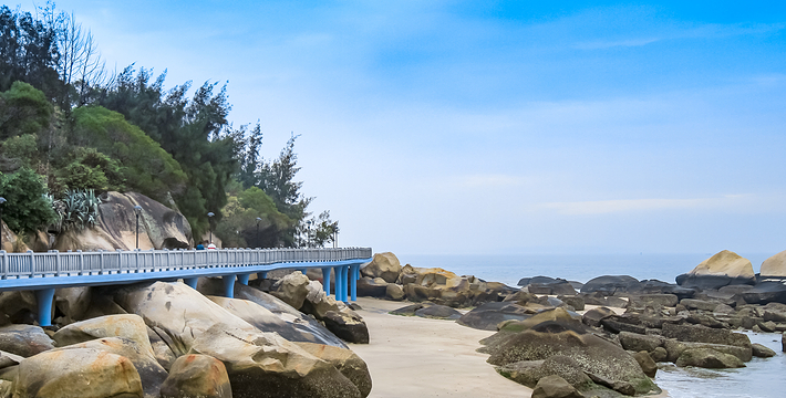 它不但自成一景,还可让游客一边领略蓝天碧海的壮美