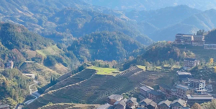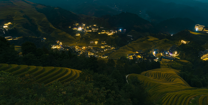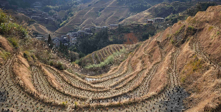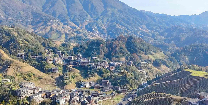 龙脊梯田风景名胜区位于桂林市龙胜各族自治县龙脊镇,距桂林市65公里。321国道经过景区大门,景区距桂三高速公路龙胜双洞出口仅5公里,交通十分便利。龙脊梯田是“世界梯田原乡”。龙脊梯田景区目前是中国重要农业文化遗产、国家AAAA级景区,是以梯田稻作农耕文化为主体,集自然景观与少数民族人文景观相结合的风景名胜区。龙脊梯田历史悠久,梯田始建于秦朝,成形于唐朝,完工于明朝,距今已有2300多年的历史。龙脊的壮族、瑶族先民世代耕种梯田,至今仍保留着“偶耕”等原始的耕作方式。梯田依山形地势而修,从水流湍急的河谷到云雾缭绕的山峦,凡有水、有地的地方,都开凿了梯田。形成了从山脚一直盘绕到山顶,千层天梯上云端的壮丽景观!龙脊梯田的“色彩美”,美在一年四季“生命色彩”的更迭。五月春耕时节,水满田畴,如串串银链山间挂;七月盛夏,稼禾吐翠,似排排绿浪从天泻;十月金秋,稻穗沉甸,像座座金塔顶玉宇;腊月隆冬,雪兆丰年,若环环白玉砌云端,龙脊梯田一年四季各有神韵,均是旅游观光的理想时节。龙脊梯田的“线条美”,美在点、线、面完美的结合,具有强烈的视觉冲击力。梯田的规模磅礴壮观、气势雄浑,集成世界梯田造型之精华,线条如行云流水、潇洒流畅,为天下梯田所望尘莫及,堪称世界梯田奇观。“龙脊”是一个广泛的地理名词,是因为周围群山山脉的走向像一条长龙,这里的老百姓世世代代都居住在神龙的脊背上而得名。景区内共有8000多人口,主要居住着壮族和瑶族群众。包括:龙脊、平安、大寨、金江、小寨、中禄六个行政村。各村寨的梯田和民族风情各有特点,民俗节庆丰富多彩,以五月开耕节、六月梳秧节、七月“六月六”(农历)晒衣节、十月龙脊金秋梯田文化旅游节为代表,民俗风情浓郁、民族文化灿烂多姿。这里美丽的梯田、淳朴的民风,与世不争的人居生态环境,吸引了数以万计的中外游客前来休闲度假;人们远离了喧嚣的都市,将自己也融进如画的风景中,释放了压力、亲近了自然,真正感受到“田园牧歌”般的生活。