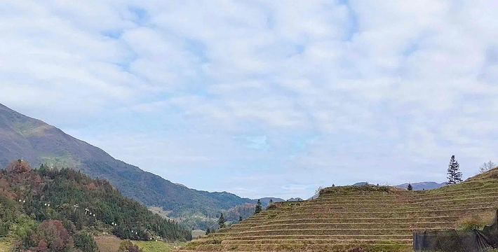 观景台上可以看到层层的梯田似千层楼梯一样直砌云端。一层层梯田似一道道鳞片,把一座连绵峻峭的龙脊山装点成一条活灵活现通体闪光的巨龙。