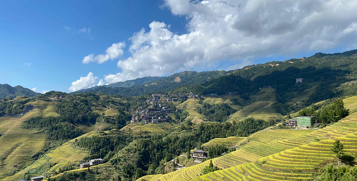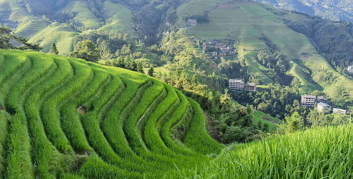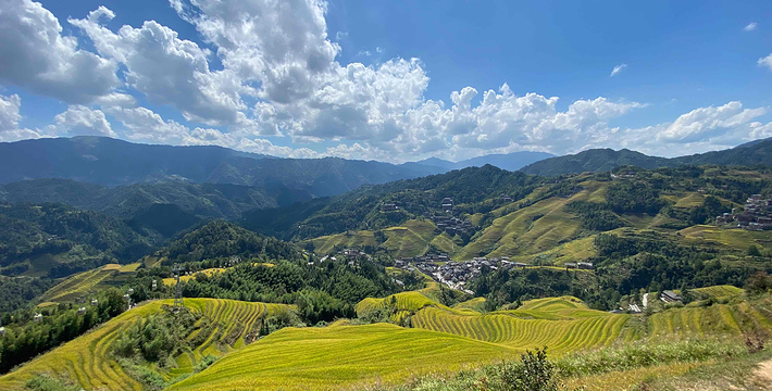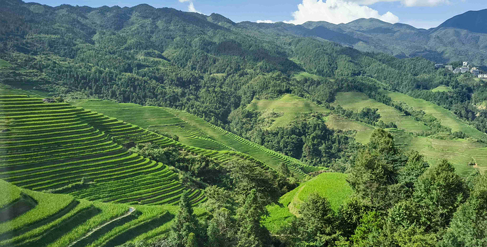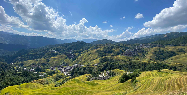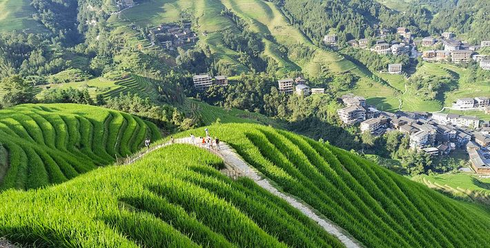 龙脊梯田风景名胜区位于桂林市龙胜各族自治县龙脊镇,距桂林市65公里。321国道经过景区大门,景区距桂三高速公路龙胜双洞出口仅5公里,交通十分便利。龙脊梯田是“世界梯田原乡”。龙脊梯田景区目前是中国重要农业文化遗产、国家AAAA级景区,是以梯田稻作农耕文化为主体,集自然景观与少数民族人文景观相结合的风景名胜区。龙脊梯田历史悠久,梯田始建于秦朝,成形于唐朝,完工于明朝,距今已有2300多年的历史。龙脊的壮族、瑶族先民世代耕种梯田,至今仍保留着“偶耕”等原始的耕作方式。梯田依山形地势而修,从水流湍急的河谷到云雾缭绕的山峦,凡有水、有地的地方,都开凿了梯田。形成了从山脚一直盘绕到山顶,千层天梯上云端的壮丽景观!龙脊梯田的“色彩美”,美在一年四季“生命色彩”的更迭。五月春耕时节,水满田畴,如串串银链山间挂;七月盛夏,稼禾吐翠,似排排绿浪从天泻;十月金秋,稻穗沉甸,像座座金塔顶玉宇;腊月隆冬,雪兆丰年,若环环白玉砌云端,龙脊梯田一年四季各有神韵,均是旅游观光的理想时节。龙脊梯田的“线条美”,美在点、线、面完美的结合,具有强烈的视觉冲击力。梯田的规模磅礴壮观、气势雄浑,集成世界梯田造型之精华,线条如行云流水、潇洒流畅,为天下梯田所望尘莫及,堪称世界梯田奇观。“龙脊”是一个广泛的地理名词,是因为周围群山山脉的走向像一条长龙,这里的老百姓世世代代都居住在神龙的脊背上而得名。景区内共有8000多人口,主要居住着壮族和瑶族群众。包括:龙脊、平安、大寨、金江、小寨、中禄六个行政村。各村寨的梯田和民族风情各有特点,民俗节庆丰富多彩,以五月开耕节、六月梳秧节、七月“六月六”(农历)晒衣节、十月龙脊金秋梯田文化旅游节为代表,民俗风情浓郁、民族文化灿烂多姿。这里美丽的梯田、淳朴的民风,与世不争的人居生态环境,吸引了数以万计的中外游客前来休闲度假;人们远离了喧嚣的都市,将自己也融进如画的风景中,释放了压力、亲近了自然,真正感受到“田园牧歌”般的生活。