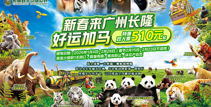 长隆野生动物世界自驾车平日票: