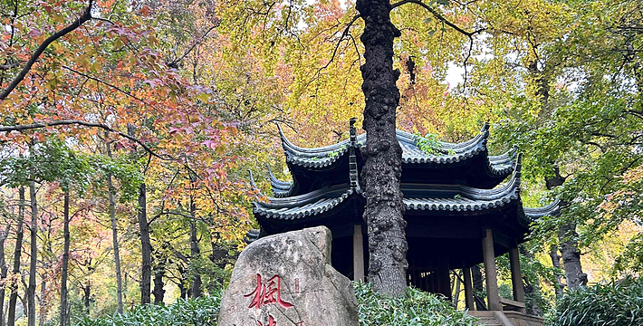 天平山为国家太湖名胜区木渎景区主要景点之一,是省级文物保护单位。东南为金山,南连灵岩山,西北通华山、天池山,北接寒山岭和观音山,占地面积77公顷。山高海拔201米,为天平。顶平正,可聚数百人,故名天平山。唐代又名白云山。因山顶正平故名,是一个人文及自然景观都比较丰富的景区。天平山以怪石、清泉、红枫“三绝”著称,山上奇石嶙峋,危耸峭峻,似封建时代大臣朝见皇帝用的附笏一样,人称“万笏朝天”。山腰有钵盂泉,又名白云泉,泉水醇厚甘冽”。山东南麓之古枫林,为明代万历年间宋代名臣范仲淹十七世孙范允临从福建带回,植于这祖莹之地。深秋时节,满山红叶若红霞缭绕,层层片片,蔚为壮观,有“天平红枫甲天下”之誉。