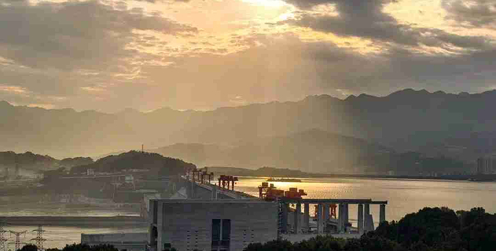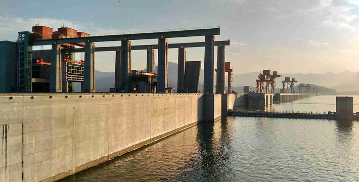 185观景点位于三峡大坝坝顶公路的左岸端口处,站在平台上向下俯看,就如同身临坝顶,可以感受到大坝的高度。
