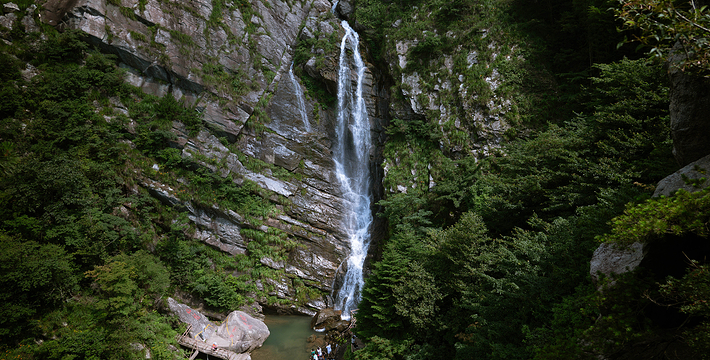 三叠泉位于五老峰下部,飞瀑流经的峭壁有三级,溪水分三叠泉飞泻而下,落差共155米,极为壮观,撼人魂魄。