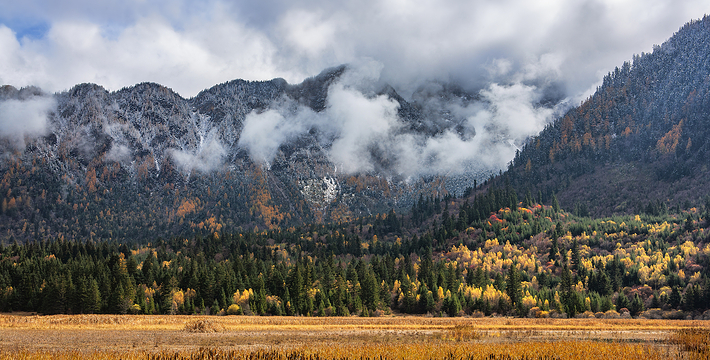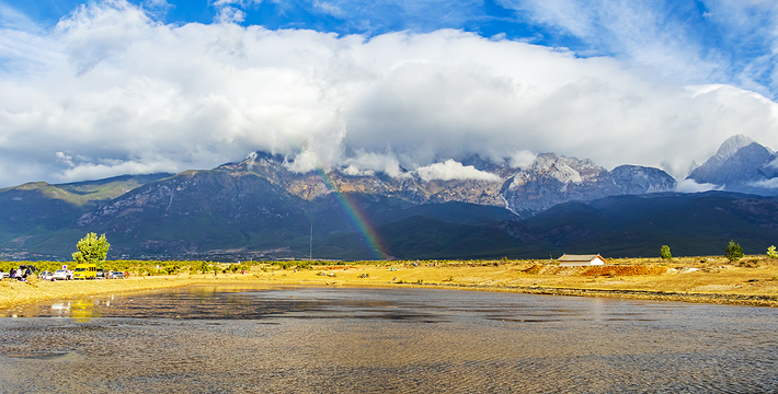 甘海子给人一种开阔空旷的感觉,在高耸入云的玉龙雪山东坡面前,有这样一个大草甸,为游人提供了一个观赏玉龙雪山的好场地,在这里横看玉龙雪山、扇子陡等山峰历历在目。