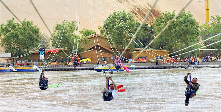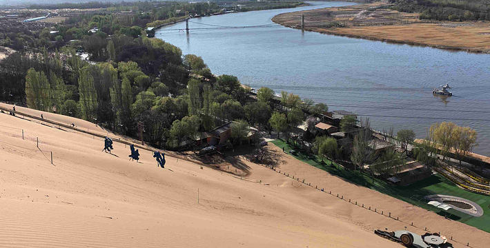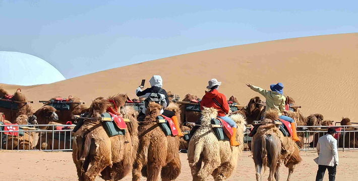 在这里,游人既可以在这里观赏大沙漠的景色,眺望包兰铁路如一条绿龙穿越沙漠伸向远方的奇迹;又可以骑骆驼在沙漠上走走,照张相片,领略一下沙漠行旅的味道。