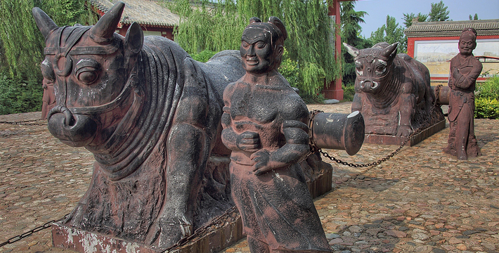 蒲津渡遗址位于山西省永济市西约13公里处,为唐至明朝的遗址。蒲津渡是历史上的著名古渡口。考古发掘的蒲津渡遗址是唐开元十二年(公元724年)修建的“铁索连舟固定式曲浮桥”的遗迹。遗址附近还发现有明代石碑一通和石堤50米。发掘清理出来的蒲津渡遗迹有铁牛四尊,各长3.3米,高1.5米,重约50—70吨。每条铁牛旁各有一铁人,高约1.9米,重约3吨。南侧铁牛下还发现有铁板、铁柱,铁牛尾部立有铁制的七星铁柱7根”,在考古学、桥梁建筑、冶炼铸造、水文地质等学科领域,有着十分重要的研究价值。蒲津渡遗址对于中国古代桥梁史的研究具有极为重要的价值。