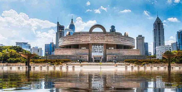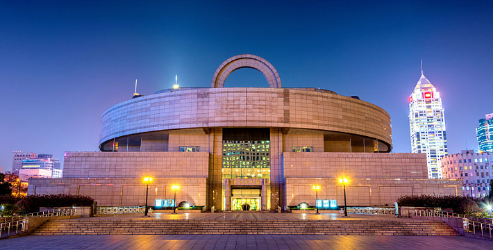 上海博物馆是一座大型的中国古代艺术博物馆,馆藏珍贵文物12万件,其中尤以青铜器、陶瓷器、书法、绘画为特色。藏品之丰富、质量之精湛,在国内外享有盛誉。上海博物馆创建于1952年,原址在南京西路325号旧跑马总会,由此开始了她的发展之路。1959年10月迁入河南南路16号旧中汇大楼,在此期间,上海博物馆由小到大,在各方面都得到了很大的发展。1992年,上海市政府作出了决策,拨出市中心人民广场这一黄金地块,建造新的上海博物馆馆舍。