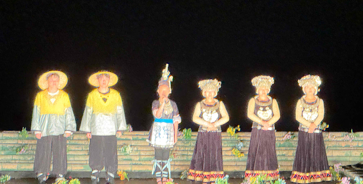 演出服装多姿多彩,根据各不同的场景选用了壮族、瑶族、苗族等不同的少数民族服装,让你充分体会各民族风貌。
