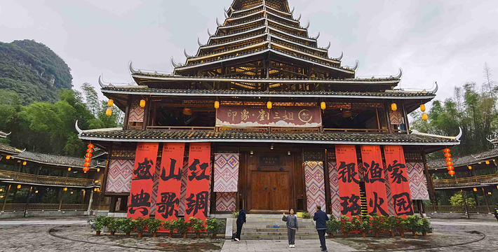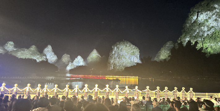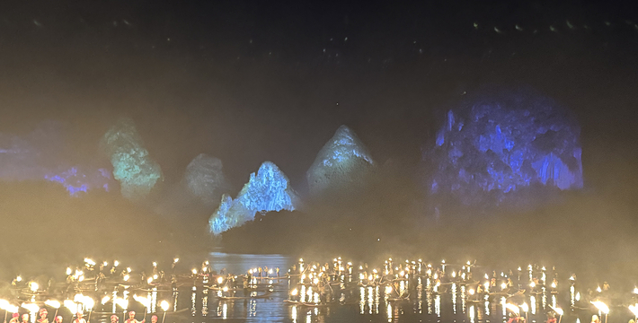 大型桂林山水实景演出《印象·刘三姐》是中国·漓江山水剧场之核心工程,由桂林广维文华旅游文化产业有限公司投资建设、我国著名导演张艺谋、王潮歌、樊跃出任总导演,国家一级编剧、中国实景演出创始人、山水文化机构董事长梅帅元任总策划、制作人,历时五年半努力制作完成。它集漓江山水、广西少数民族文化及中国精英艺术家创作之大成”、艺术性、震撼性、民族性、视觉性于一身,是一次演出的革命、一次视觉的革命。印象·;艺术性、震撼性、民族性、视觉性的集合、历经5年零5个月;1.654平方公里水域、12座著名山峰、61位中外著名艺术家参与创作、109次修改演出方案、600多名演职人员参加演出。
