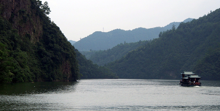 游览五泄,一般从青口进入,古人云:“五泄名山青口锁,到此看山山便可”。沿公路前行,路旁曲溪青流,远处便是叠石岩。它壁立数十丈,层层叠叠如彩屏。再前便是称作“五泄湖”的水库,其弯弯曲曲,长2公里许,犹似一条绿色的绸带飘浮在群山之中,颇有富春山水的风采。在游船中还可以观赏许多奇特的山石景观,夹岩洞为其中一景。当年夹岩洞下有夹岩寺,香火较旺,水库建成后,寺庙成为水底龙宫。夹岩洞恰好位于湖面之上,洞高16米,深20米,内曾供奉千手观音,外观幽暗莫测,颇具神秘色彩。沿湖还可以观赏元宝峰、鹫鹰峰、仙桃峰、老僧峰等。游人在天一碧码头登岩后,沿五泄溪北上,过遇龙桥,就是五泄禅寺。寺又称永安禅寺,相传为五台山灵默禅师在唐元和三年(808年)所建,至今还保存着明代画家陈洪绶书写的“三摩地”石刻门额,清大学士刘墉为官厅题写的“双龙湫室”匾额。寺左面的石壁上还刻有徐渭“七十二峰深处”的题词,均为珍贵文物。寺内香火颇旺。