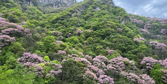 太平峪由隋朝皇帝建太平宫得名,峪中山水景观奇特,是唐王朝观花避暑的山水乐园。园内有苍劲古老的落叶松原始森林、顶风傲雪的红桦纯林、紫荆花春开如潮。炎夏群山披绿、古木参天、万木峥嵘,好一派生机。