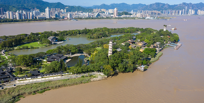 乘28路、33路、41路、51路、68路、71路、92路、106路等至江心码头站,换乘江心轮渡上江心屿。