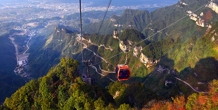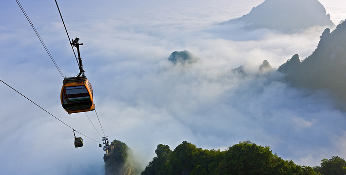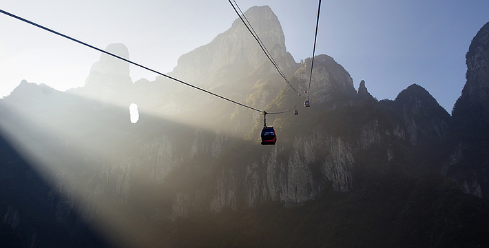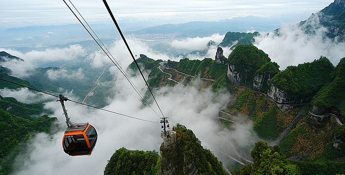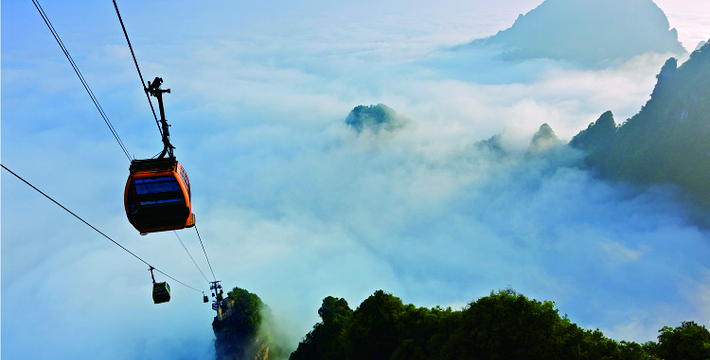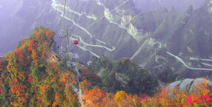 天门山索道犹如一道彩虹飞渡“人间” ,又像一条巨龙腾翔素云苍穹,依山籍壁,拔地冲天,荡气回肠,恢宏壮观,成为天门山旅游风景区“四大奇观”之一。