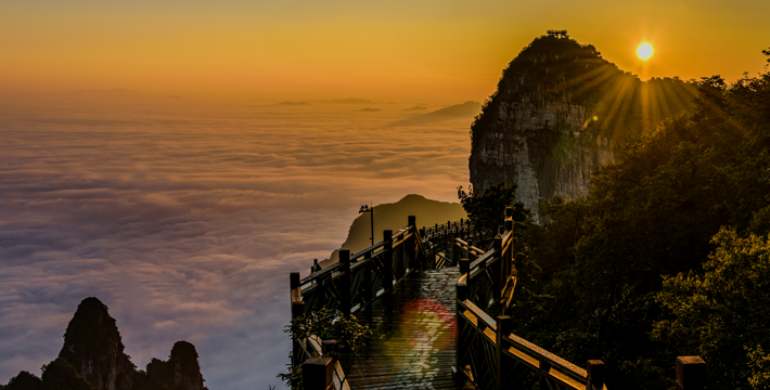 这条看着就让人腿软的玻璃栈道给人带来的刺激震撼感可与举世闻名的美国大峡谷玻璃走廊“天空之路”媲美。如果你够胆,一定要挑战天门山顶的东方“天空之路”。