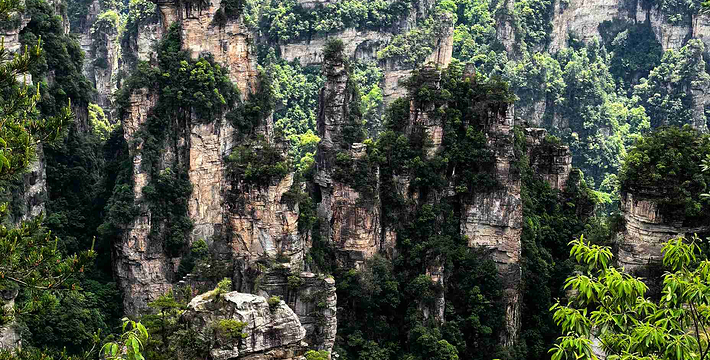 张家界国家森林公园三千座石峰拔地而坡,形态各异,峰林间峡谷幽深,溪流潺潺。春天山花烂漫,花香扑鼻;夏天凉风习习;秋日红叶遍山,山果挂枝;冬天银装素裹,满山雪白。公园一年四季气候宜人,景色各异,是人们理想的旅游、度假、休闲目的地。三千奇峰,八百秀水,演绎出张家界国家森林公园的传奇,展示着自然之美。张家界国家森林公园张开热情的双臂欢迎您!