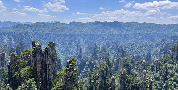 张家界国家森林公园三千座石峰拔地而坡,形态各异,峰林间峡谷幽深,溪流潺潺。春天山花烂漫,花香扑鼻;夏天凉风习习;秋日红叶遍山,山果挂枝;冬天银装素裹,满山雪白。公园一年四季气候宜人,景色各异,是人们理想的旅游、度假、休闲目的地。三千奇峰,八百秀水,演绎出张家界国家森林公园的传奇,展示着自然之美。张家界国家森林公园张开热情的双臂欢迎您!