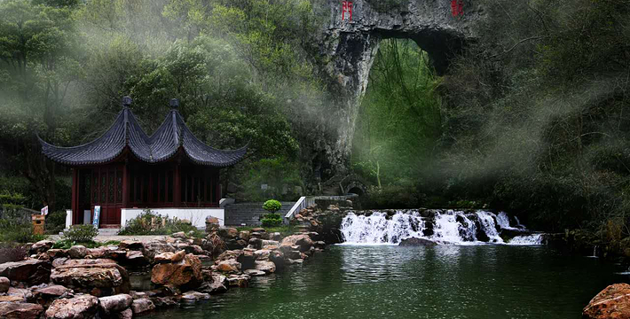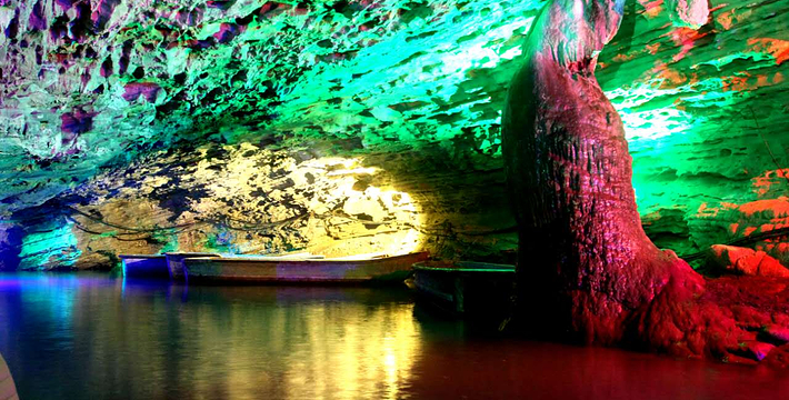 龙宫洞风景区由溶洞群(龙宫洞、玉壶洞、玉仙洞)、仙真岩庙宇、森林公园和情人谷漂流等部分组成。龙宫洞全长1600米,在古生代寒武纪时期,这座独特的喀斯特溶洞就被大自然逐渐溶塑成一座规模宏大、气派非凡的地下艺术宫殿。洞内四季恒温18摄氏度,小桥流水,钟乳倒悬,石笋擎天,姿态万千让人目不睱接,酷似古典小说《西游记》中描绘的东海龙宫,令您叹为观止。玉壶洞由水、旱两洞组成,旱洞500米,水洞700米,洞内流水潺潺,波光倒影,乘舟畅游,别有一番情趣。宽敞明亮的玉壶大厅曾多次举办过全国性的蓝球赛。