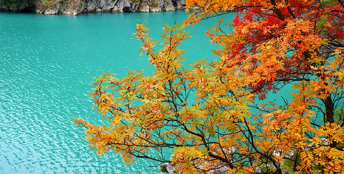成片的红叶树林,那种美无法用文字来表述,每年的10月中旬到11月底,是茂县松坪沟看红叶的好时节。每当这个季节,景区内红叶似火、湖水碧蓝,风景令人陶醉。
