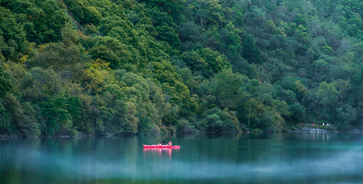 墨海:水的颜色如蓝墨水一样深邃,所以叫墨海。墨海因岩壁断裂下陷积水和山体崩塌阻塞水流而形成,面积28亩,水沉淀在黛青色的岩石上,深不见底,四周林立的山峰、绿叶成荫的树木、翠绿的苍松和杂生的花草倒映其中,水里水外相互作用,水就变得了深蓝如墨,就像倾倒的一池墨水。