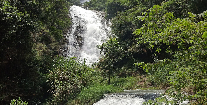 天湖旅游风景区位于从化温泉省级旅游度假区内,群山环抱,古木参天,层林叠翠,飞瀑流泉与湖光山色交相辉映,自然风光优美怡人,是远足探幽避暑的胜地。天湖是一个人工湖,建于1972年,以山林、湖水、瀑布和山珍野味而著称,由于建在“万丈飞瀑泻漏天”的瀑布之巅,故名“天湖”。天湖之下,在翠绿的峰峦间,有著名的“温泉三瀑”。它是天然瀑布,分为五级,从上到下,第一级到第三级称为百丈飞涛瀑,第四级称为飞虹瀑,第五级称为香粉瀑。其中“百丈飞瀑”是华南地区至大的自然瀑布,60年代以来许多中外名人都曾惊叹天湖瀑布的恢宏气势,留下不少佳话。朱德总司令当年亲笔题写的“山舞银蛇”四个大字至今仍刻在瀑布旁的峭壁上;郭沫若先生曾欣然赋诗:“百丈叠三瀑,一溪奏万笳。泉飞崖罩面,水激石生花”。