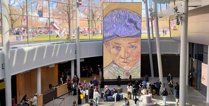 梵高美术馆(Van Gogh Museum)又称梵高博物馆,建于1973年,位于荷兰的阿姆斯特丹。其原设计是由建筑师里尔维德(1888~1964)规划,收藏有梵高黄金时期比较珍贵的200幅画作,约为全部作品的4分之1,素描几百件(也有说上千件),还有凡高的几乎全部书信而备受瞩目,其中较知名的应属“群鸽”与“向日葵”。博物馆同时还展出与梵高同时代的作品,有些是给予梵高灵感和从梵高作品中获得灵感的其它画家的作品。另外,美术馆内还收藏有梵高和弟弟提奥收藏的日本浮世绘和其他一些画家的作品,比如高更和劳特雷克笔下的梵高肖像,高更和贝尔纳的自画像等。